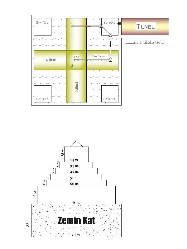 Karanlığın içinde, birinci katın plânı halen capcanlıydı. Bilinci devreye girince, iskeletin etle kaplanıp vücuda dönüştüğü gibi, plân önce üç boyut, ardından hologram haline geldi. 90 x 90 metre ebadındaki bu katta, ilk dikkat çeken unsur, kare ebadındaki tabanda birbirini doksan derece kesen iki adet tüneldi. Artı işareti oluşturan tünellerin kolları arasında dört adet de oda vardı. Tünellerle, her bir köşeye denk gelen odaların arasındaki kalın taş duvarlar sistemin ana taşıyıcısı vazifesini görüyordu. Hologramdaki çok boyutlu görüntünün içine süzülüp ilk tünelden içeri girdi.