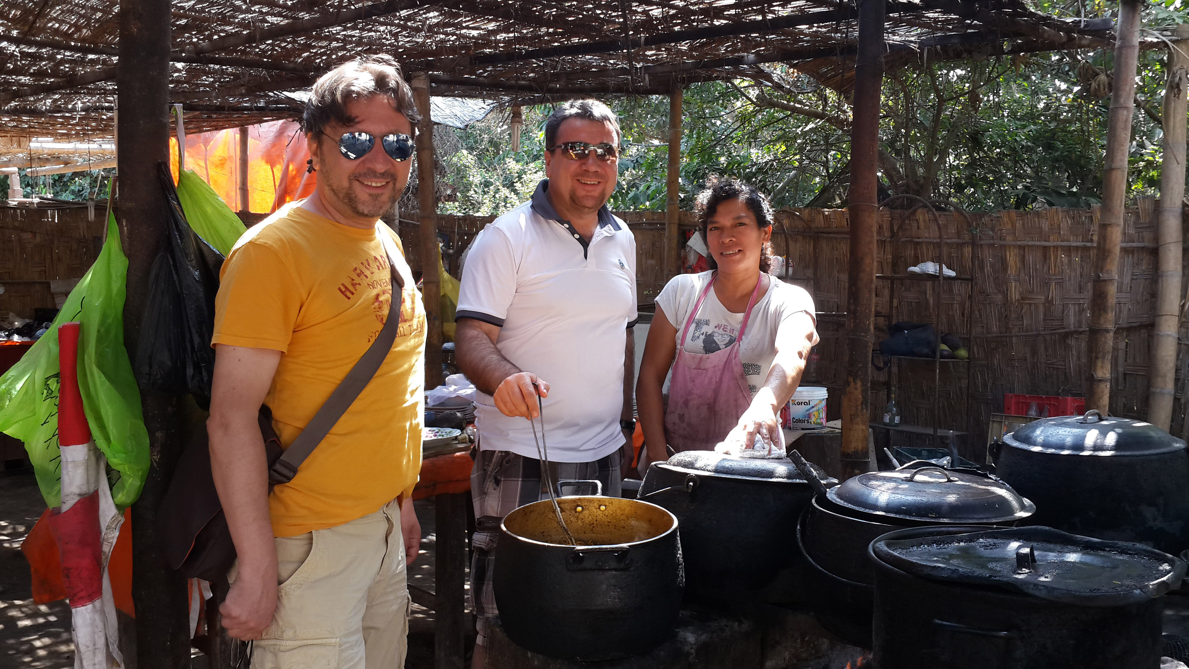 Öğlen olmuş acıkmışız. Rehberimiz Axel bizi şehrin kenarında sahil kısmına doğru bir yerel lokantaya götürüyor. Peru lokantaları genellikle müzikli… Sahnede gitar çalıp şarkı söyleyen müzisyenler var. Arka bahçede, odun ateşi üzerinde kara kazanlar içinde pişen yemekleri gösteriyorlar ve seçimimizi orada kazan başında yapıyoruz. Doğallığın dibindeyiz anlayacağınız. Pek bir hoşumuza gidiyor, resim çektirmeler filan… Fakat burada fazlaca et yemeği var ve bendeniz kırmızı et yemediğim için ördekte karar kılıyorum. Bir gün önce de Lima’nın bir kenar mahallesinde yine böyle müzikli bir lokantada ördek yemiştim. Perulular çok ördek yiyor. Ördek eti çok sert… Yiyeceğim derken sarf edilen enerji, alınan kaloriden daha fazla… Axel, “doğal bunlar, ondan sert…” diyor. Türkiye’deki on yedi günlük tavuklardan haberdar mı diye bakıyorum gözlerinin içine ama bu yönde bir işaret göremediğim için susuyorum. İlk defa burada siyah mısır suyu içiyoruz, gayet lezzetli. Bizim şalgam suyunun Peru versiyonu desek olur.