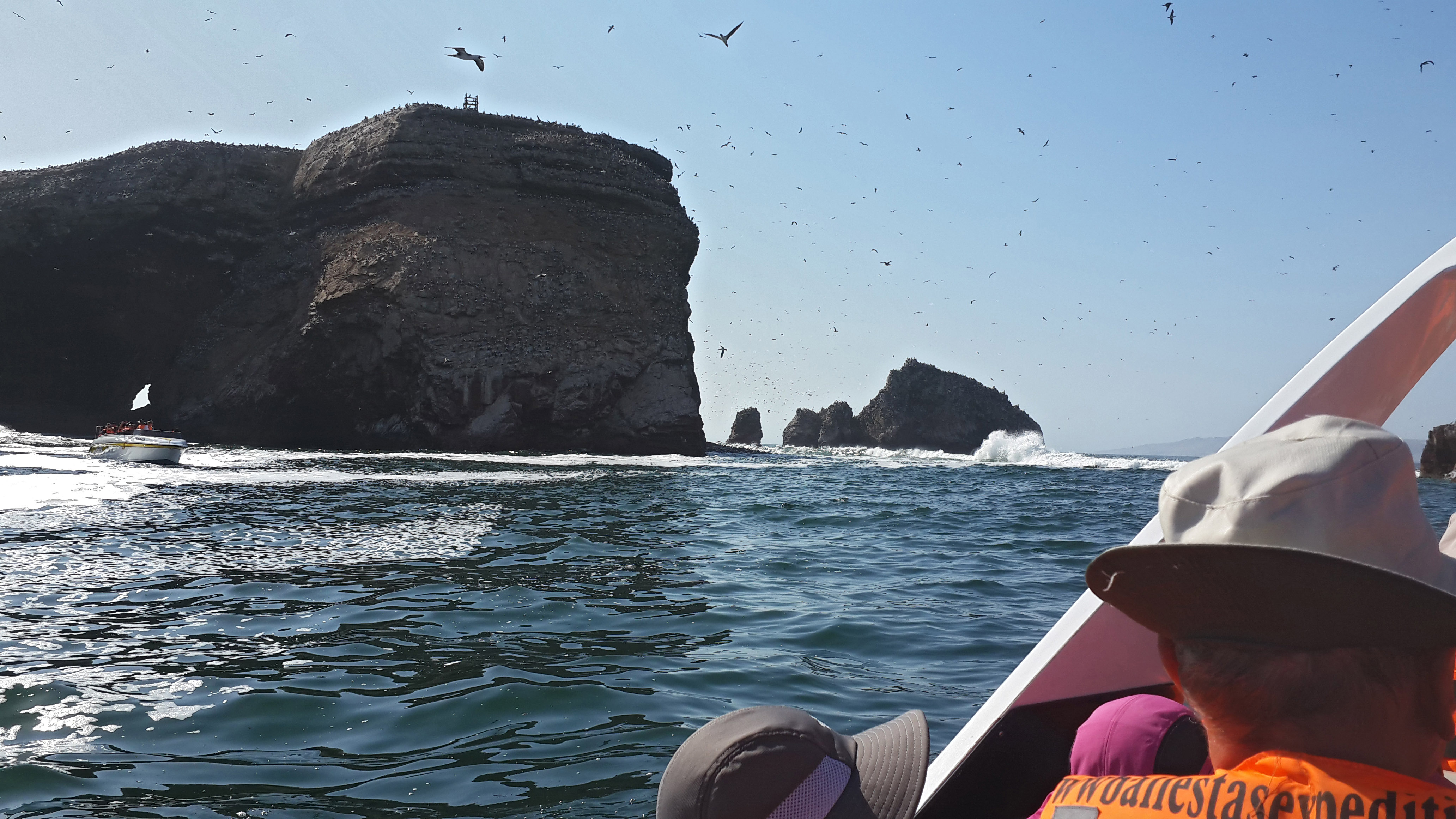 Ballestas Adaları irili ufaklı on kadar adadan oluşmuş… Adalar, sarp sırtlardan oluşan bol mağaralı kayalıklar… Her taraf kuş ve kuş sesi… Evet, kayaların üstü kuş çeşitlerinden neredeyse görünmüyor. Kayalıkların suyla temas ettiği yerlerde ise fok balıkları karşılıyor sizi. Diplerine kadar yanaşan teknelere alışmış olmalılar ki dokunma mesafesine gelseniz dahi istiflerini bozmuyorlar, kameralarınıza poz dahi veriyorlar. Düşünüyorum da her halde milattan önce de böyleydi burası, uzunca bir vakit insan eli, yüzü değmemiş, şimdi de sadece tekneden görülebiliyor, adalara çıkmak yasak. Hoş, yasak olmasa da çıkılacak gibi değil zaten, dağcı filan olmak gerek. Yine de insanoğlunun yok etme becerisi her türlü engeli aşacağından bu yasak gayet yerinde.