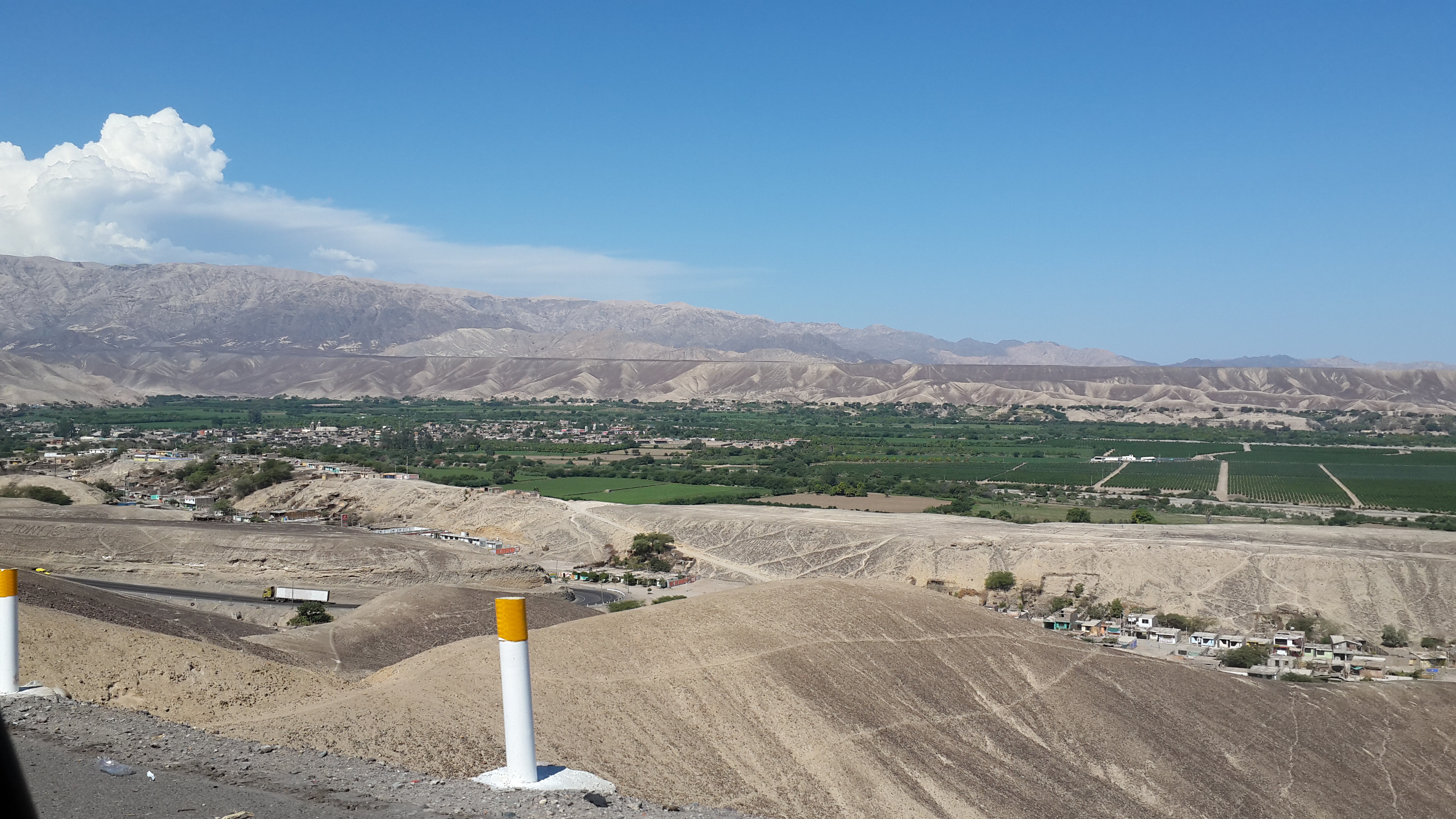 Palpa adlı kasabanın bulunduğu geniş vahayı kat edip, üstü pist tepelerin güneyinden kıvrılarak önce daha dar yeni bir vahaya ardından uçsuz bucaksız bir çöl arazisine giriyoruz. Yaklaşık 25 kilometrelik bu çöl, Nasca Çizgilerine ev sahipliği yapıyor ama yerden bu figürleri görmek mümkün değil, havalanmak lazım. Çölün rengi de Atacama’nın diğer bölgelerinden değişik; griye çalan bir kahverengi… Ve Nasca…