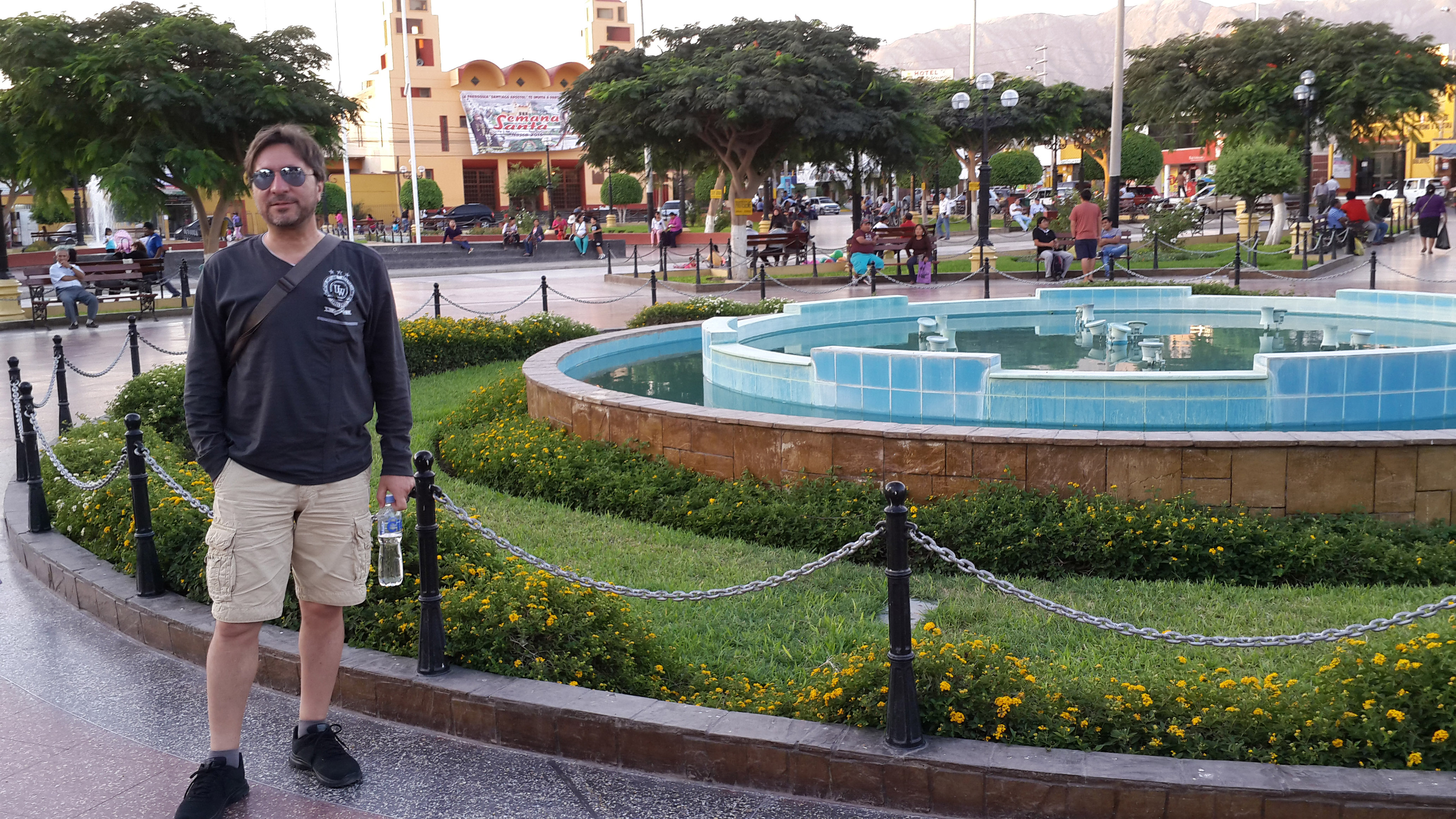 Nasca, bir çöl şehri olmasına rağmen bir önceki durağımız olan Chinca Alta’ya göre daha derli toplu. Bu derli toplu tabirini olumlu yahut olumsuz anlamda kullanmıyorum. Hatta daha suni olduğunu bile söyleyebilirim çünkü Chinca Alta’nın doğallığı, basitliği ve fantastik görüntüsü burada yok. Yollar asfalt veya parke, binalar(en azından şehir merkezinde) sıvalı ve düzgün işçilikli, dükkânlar kent dokusuna uygun, sokaklarda Chinca Alta’nın üç tekerlekli mototaksileri yerine son model otomobiller dolaşıyor, filan… Apartman türü yapılar görünmüyor, en fazla üç katlı… Plaza de Armas’ı ise gayet düzenli ve ferah bir meydan, banklarda oturup vakit geçirebilirsiniz.