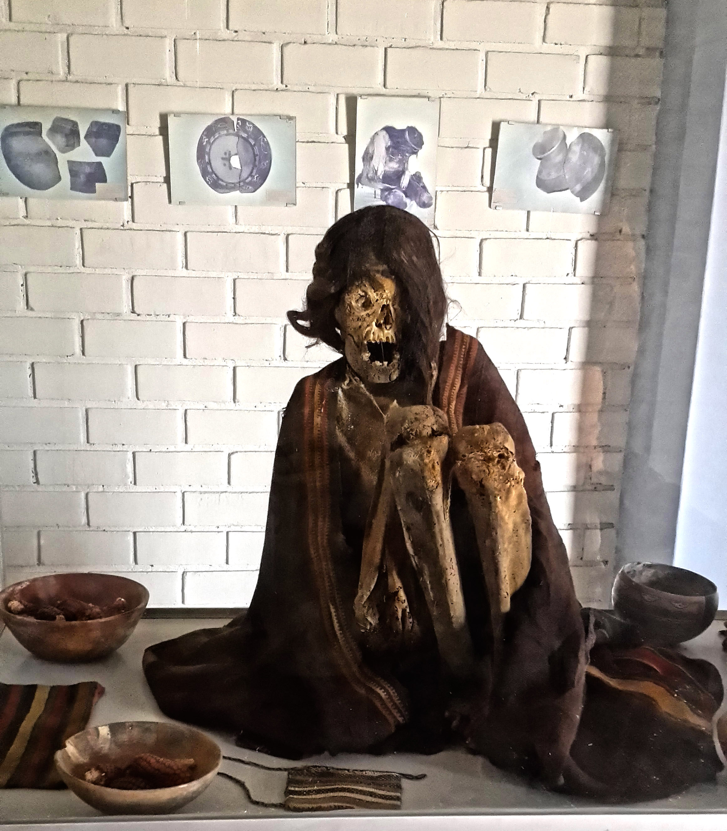 Toz toprak içinde yol alarak Chauchilla’ya ulaşıyoruz. Burası etrafı kuru dağlarla çevrili bir çöl düzlüğü… Onlarca mezar var, içindeki iskeletler kıyafetleriyle birlikte sergileniyor. Birde kapalı alanda cam fanus içinde diğerlerine göre kısmen daha iyi korunmuş bir mumya var. Nekropolis, yani ölüler şehri… Adıyla uyumlu, etrafa bakınca doğayla da uyumlu… Garip bir ürperti ve hüzün duyuyor insan. Bir de burada neden yaşamış bu insanlar sorusu akıllara takılıyor. Biraz ileride bir vaha var, belki de orada yaşadılar, az olan topraklarını ziyan etmemek için bu çöl düzlüğüne getirilip gömüldüler, kim bilir! “Zavallılar!” diyor Murat. “Kuru bir deriyle beyazlaşmış kemikleri kalmış, devlet hâlâ bedenlerini satıp para kazanıyor…” Haksız da değil, mezarları gezmek için oradaki görevliye 8’er Sol (Peru parası) ödedik. Ben de, “üstelik yoksulluk içinde ölmüş olmalılar” diyerek ironi yapıyorum. Yaşam bir garip, kim anladı ki biz anlayalım, yeniden yollara düşüyoruz…