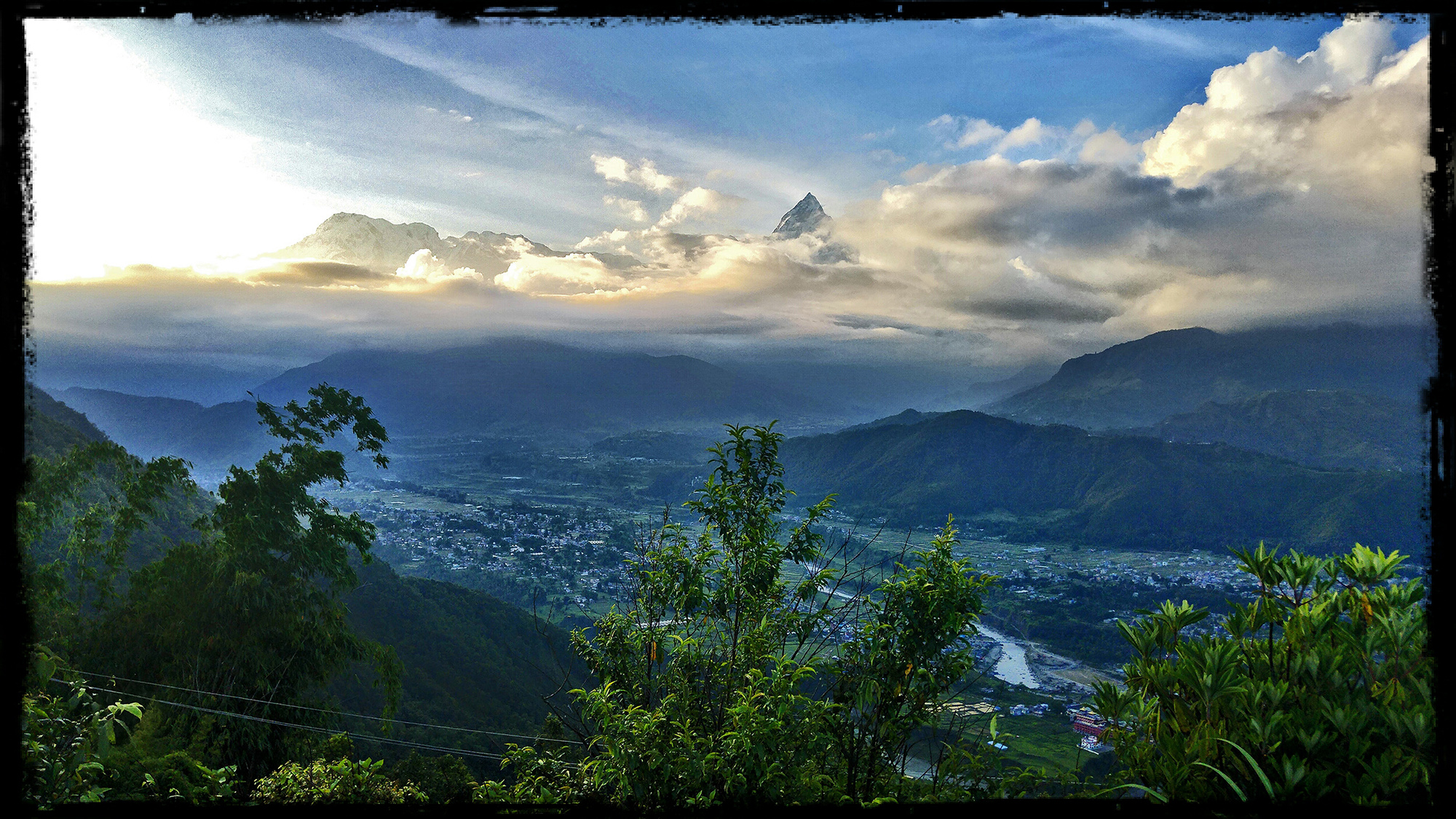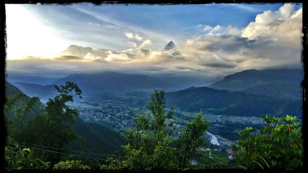 Pokhara, Himalayaların eteklerinde… Bu görkemli dağ sırasının en ünlü iki tepesi Annapurna ve Machhapuchhare (diğer adıyla Fishtail) Pokhara’nın kuzey-batısında bulutların arasından hayalet şato gibi fırlarmış, öyle muhteşem ve masalsıymış görüntü fakat Muson Yağmurlarından dolayı sürekli bulutlu olduğundan bu mevsimde pek görünmezmiş. Pokhara da gezdiğimiz sürece her yerde bu iki dağın resmiyle karşılaşınca ve de herkes bu iki dağdan bahsediyor olunca aldı bizi bir merak… Kime sorsak başını sallıyor, bu mevsimde görünmezmiş… İlk gün bizi gezdiren taksi şoförü tavsiyede bulundu, bu mevsimde sabaha karşı gün doğarken bazen ortaya çıkabiliyor, bir deneyin isterseniz dedi. Denemiş Murat, ben tabii o saatte iki dağ göreceğim diye uykumu feda edemeyeceğim için umurumda olmadı. Ne olmuş dersiniz? Kahvaltıda, ‘Şans mı var biz de,’ diye söylenen Murat’a bakınca anladım sabahın köründe mıntıka kontrolüne çıktığını… Görememiş tabii, nazlı dağlar bulutların arkasına saklanmaya devam…
