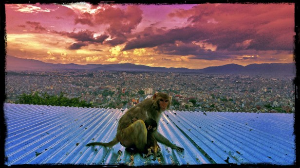 Çok tapınak var dedik, biz iki gün kaldığımız için hepsini gezme fırsatımız olmadı fakat 2 tanesini ısrarla tavsiye edebilirim. İlki Swayambhunath , Maymun Tapınağı adıyla da bilinen bir tepenin üzerinde yer alan epey büyük bir tapınak… Etraf maymun kaynıyor, içerideki yapılar depremdan hasar görmüş ama yine de büyüleyici ve görkemli olduğunu söylemek zor değil. Yüksekte dedik, Katmandu buradan kuşbakışı seyrediliyor.