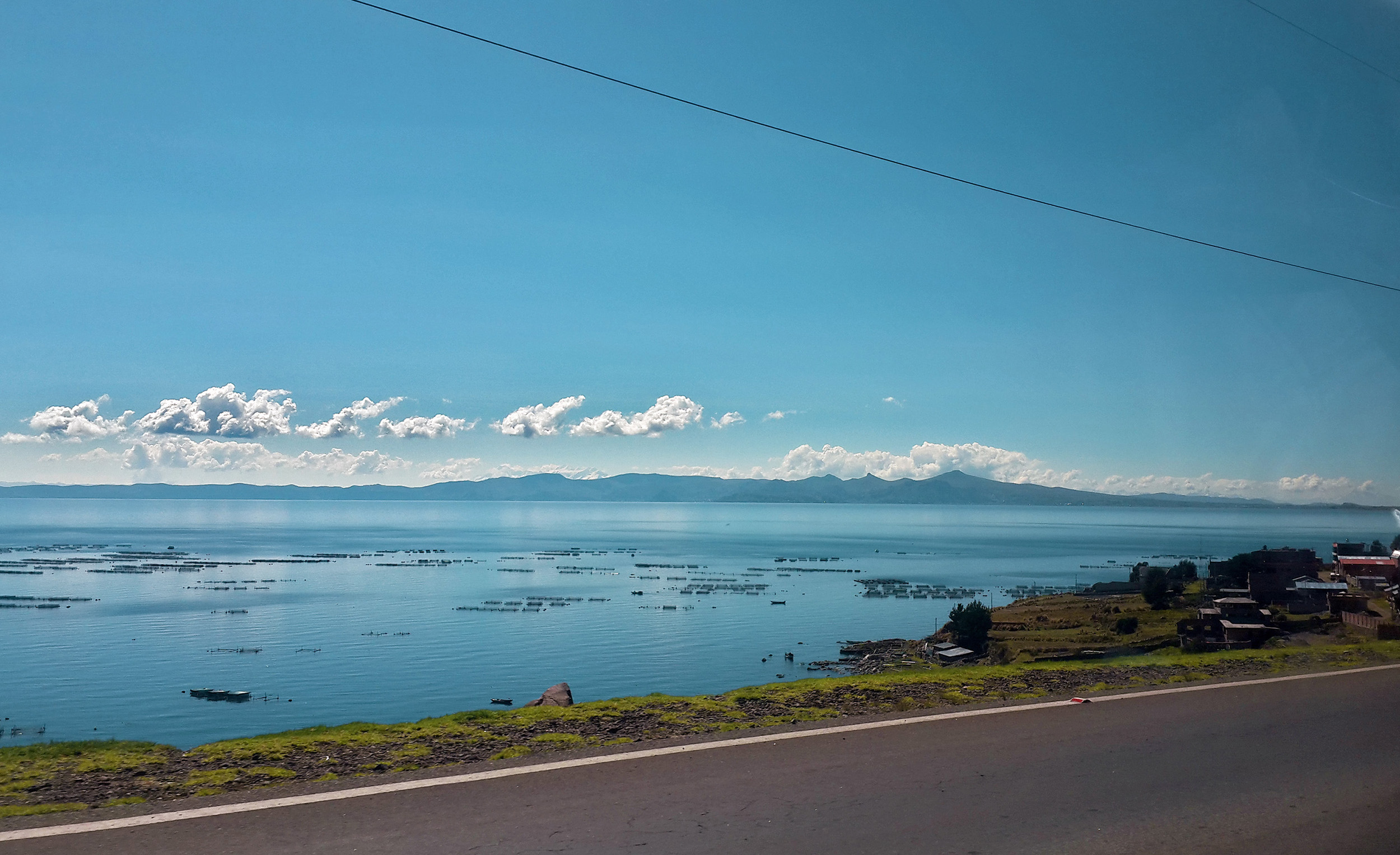 Son Peru kenti Puno’dan Bolivya’nın ilk şehri Copacabana’ya giderken: Titicaca Gölü.