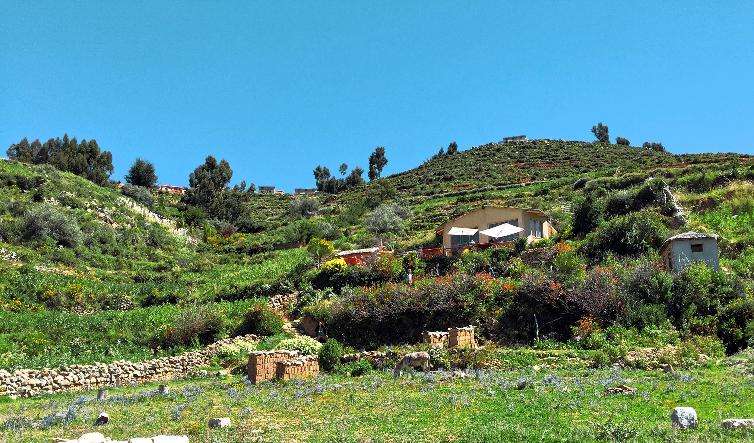 Isla del Sol’da yediğimiz öğlen yemeği için kelime bulmakta zorlanıyorum. Yamaçta, göl manzaralı, ada yerlisi bir ailenin oturduğu evin önü burası. Bildik lokantalardan değil yani, aileye misafir gitmiş gibisiniz. Etrafta oyun oynayan küçük çocuklar, kümes hayvanları ve sebze ekilmiş teraslar var. Ben hayatımda bu kadar iri taneli baklayı ilk defa burada gördüm. Titicaca Gölü’nün küçük balıklarından yedik, bizim hamsi görünümünde ama aynı lezzeti beklememek gerek tabi. Balıkla beraber gelen haşlanmış sebze tabağı için ise mucize gibi demek mümkün. İri taneli baklalar, yine iri taneli ve fildişi rengindeki mısırlarıyla o yöreye ait pembemsi patatesler muhteşem, vejetaryen değilseniz dahi ete tercih edebileceğiniz kadar lezzetliler. Başlangıçta içtiğimiz kinoalı ve sebzeli çorbanın da çok lezzetli olduğunu atlamayalım.